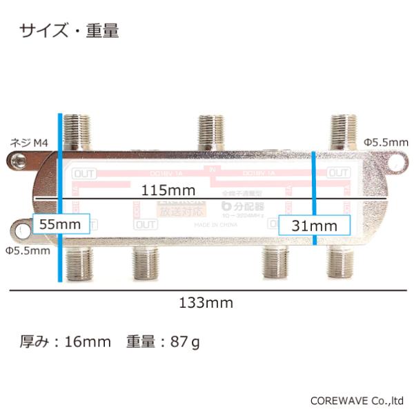 TVアンテナ6分配器 全通電 4K 8K BS/CS/UHF/VHF/FM/地デジ対応 コアウェーブ BL0139TV