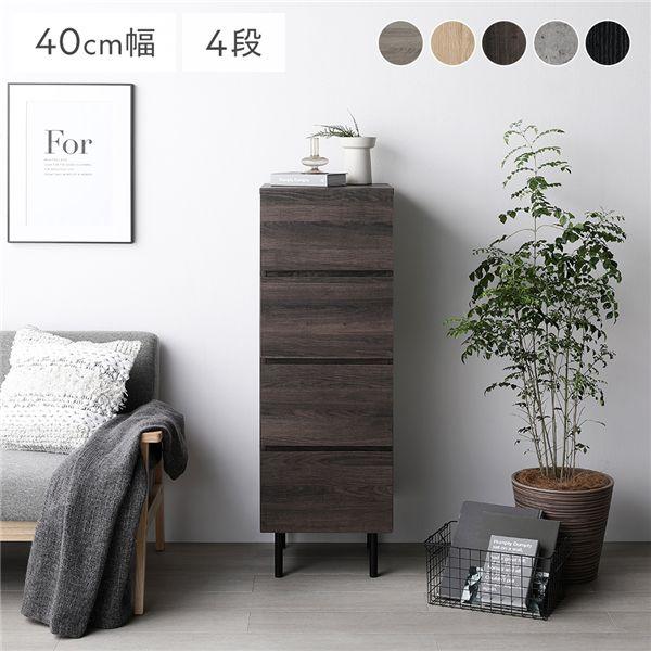 チェスト スリム 4段 幅約40cm ブラウン 大容量 引き出し収納 スチール脚 脚付き 全段スライドレール付 リビング 収納棚