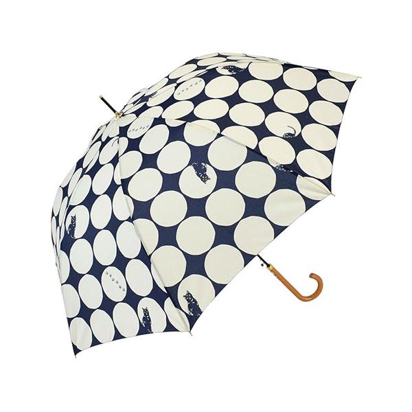三国 MKN 60cm 耐風ジャンプ傘 大きい水玉と猫 大人かわいい 金糸の猫刺繍 猫のあしあとスナップボタン オフホワイト S1100101