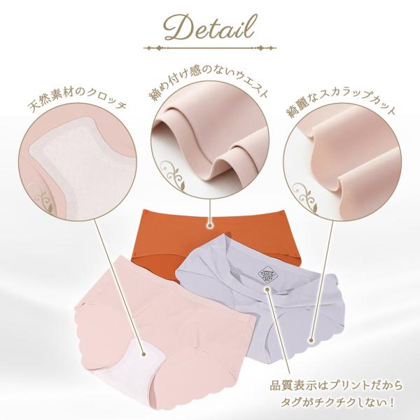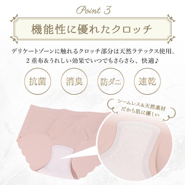 シームレスショーツ レディース 下着 インナー 天然ラテック スクロッチ 伸縮性 抗菌 消臭 スカラップ