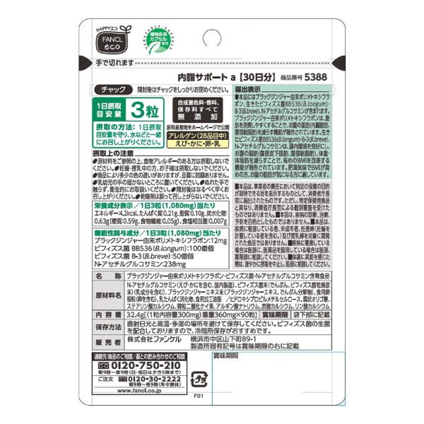 FANCL ファンケル 内脂サポート 30日分 健康食品 ビフィズス菌 サプリメント ダイエット