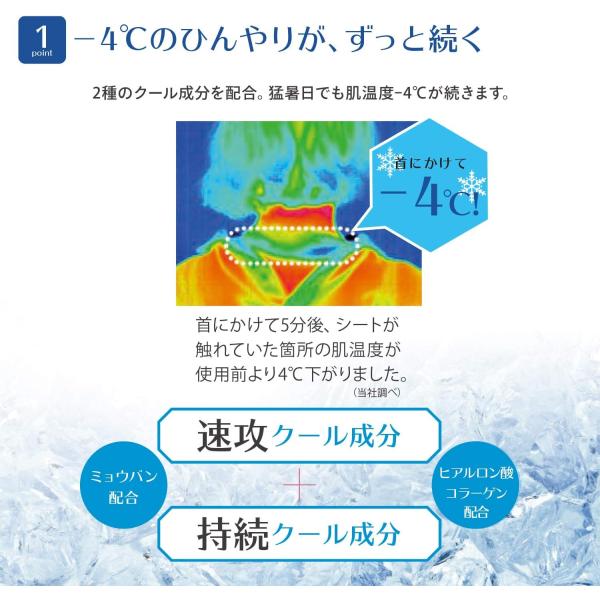 ●2種のクール成分(速攻クール成分+持続クール成分)を配合で、猛暑日でも肌温度−4℃のひんやりがずっと続く!