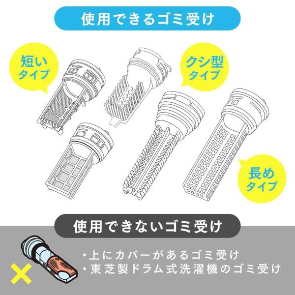 使用できるゴミ受け:受け皿タイプ使用できないゴミ受け:上にカバーがあるタイプ※東芝製ドラム式洗濯機は非対応です