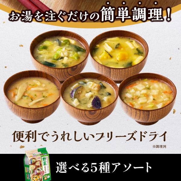 彩り豊かなおみそ汁を5種類詰め合わせた10食入りのアソート商品。