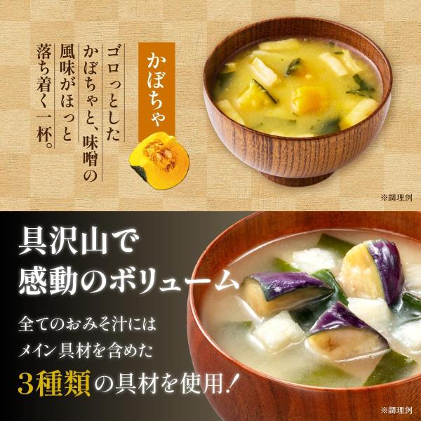 お湯を注ぐだけの簡単調理で野菜がたっぷり入ったおみそ汁を楽しめます。