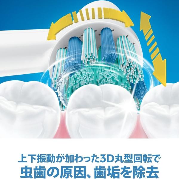 上下振動を加えた3D丸型回転ブラシが、虫歯の原因となる歯垢をしっかり除去。