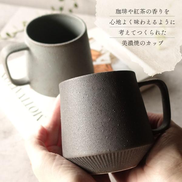 美濃焼 マグカップ 北欧風 おしゃれ カフェ コーヒーカップ 陶器 かわいい 日本製 280ml 素焼き ストライプ 大きい コップ 贈り物 プレゼント グレー ブラウン