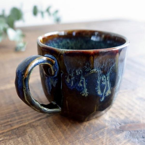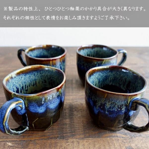 マグカップ 美濃焼 おしゃれ 流し釉 黒 ブラック 青 ブルー 紺 カフェ 日本製 コーヒーカップ 陶器 かわいい 素朴 大きな 290ml コップ 大きい 人気 おすすめ