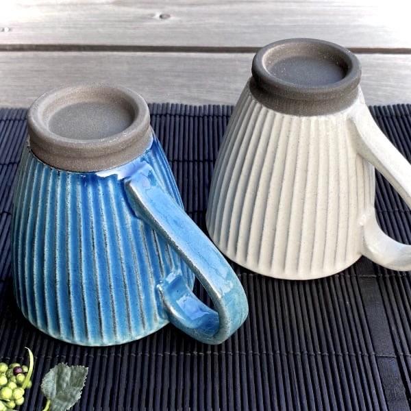 マグカップ おしゃれ 美濃焼 カフェ 北欧風 コーヒーカップ 陶器 かわいい 日本製 250ml 素焼き しのぎ 黒土 コップ 青 ブルー 白 ホワイト 人気 おすすめ 国産
