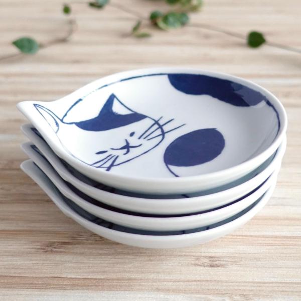 波佐見焼 ねこ 小皿 4枚セット 猫 お皿 おしゃれ 日本製 デザイン 陶器 プレート 取り皿 醤油皿 おやつ皿 豆皿 箱入り ギフト 贈り物 プレゼント 和食器 丸皿