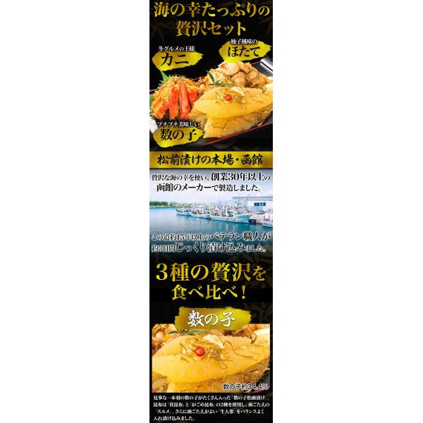 期間限定SALE中 本場海鮮松前漬け3種セット3kg 松前漬 数の子 かずのこ ほたて 帆立 ズワイガニ 昆布 函館 海鮮 送料無料