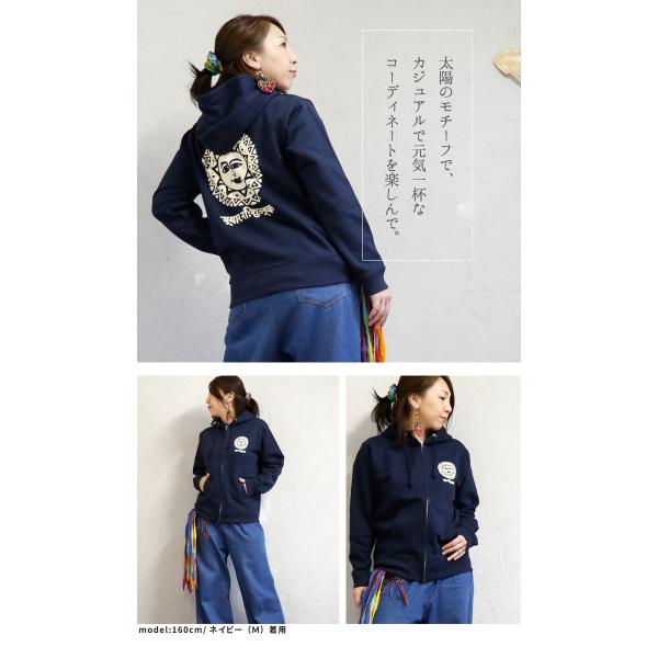 エスニック ジップアップ パーカー 長袖 フード付き 太陽 ファッション アジアン 大きいサイズ ビッグ 冬 秋 春 大きめ