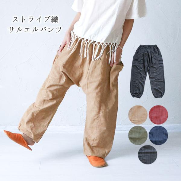 送料無料 エスニック サルエルパンツ アラジン 綿100% ズボン ストライプ ファッション アジアン メンズ レディース 男女兼用 ユニセックス ゆったり 大きめ (3)