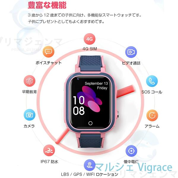 キッズ 腕時計 スマートウォッチ GPS 子供 4G ビデオ通話 多機能 双方向通話ウォッチ GPS カメラ自撮り 遠隔監視 懐中電灯 歩数計 SOSコール IP67防水