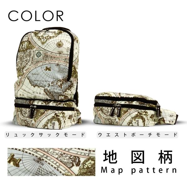 50%OFF リュック 2way ポーチ かばん リュックサック ウエストポーチ 鞄 折りたたみ 鞄 コンパクト 地図柄 ワールドトランク World Trunk 9087