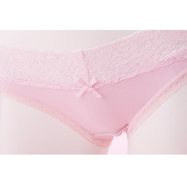 日本製 フルバック花柄ストレッチレースデザインショーツ 花柄ストレッチレースとセンターリボン