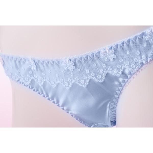 日本製 かわいいお花モチーフ&レースの光沢サテンショーツ