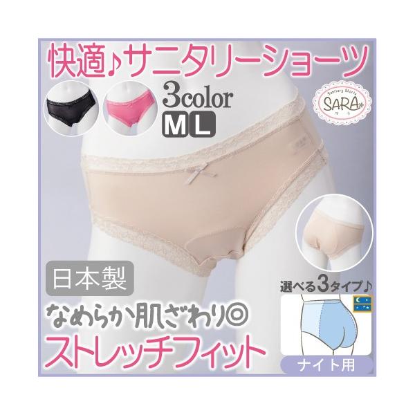 サニタリーショーツ 夜用 生理用ショーツ 日本製 オフィス用 ストレッチ 綿 羽根付対応 ショーツ パンティ