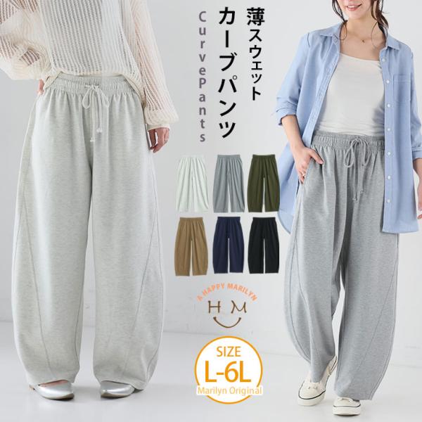 大きいサイズ レディース パンツ 新色追加 夏だから 薄スウェット生地で作った カーブパンツ ボトムス LL 3L 4L 5L 6L 春 春物 春服 夏 夏物 A