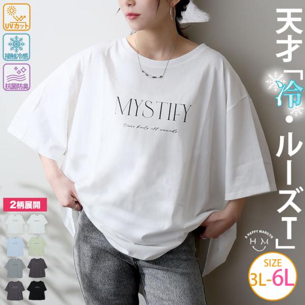 大きいサイズ レディース トップス スゴっ 裏技 実は裏から冷やしてます 選べるプリント プレーティングセミシルケット天竺 ゆるシルエット Tシャツ A