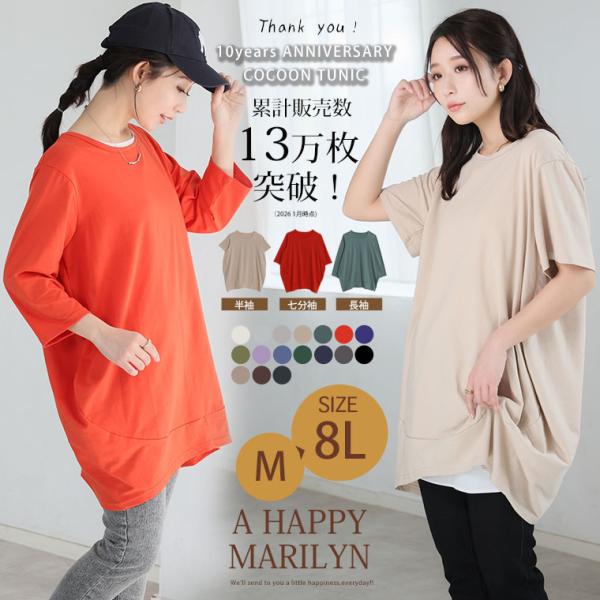 大きいサイズ レディース トップス 新色追加 半袖・七分袖・長袖 コクーン シルエット チュニック Tシャツ ワンピース LL 3L 4L 5L 6L 7L 8L A