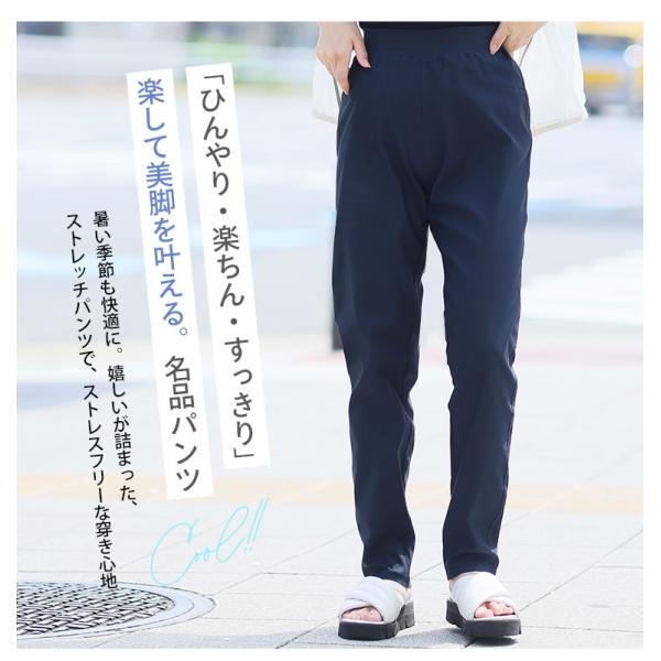 レディース パンツ 楽冷 ひんやり 接触冷感 COOL クール ウエストゴム 楽ちん ストレッチ 美脚 レギパン ボトムス スキニー ズボン SE