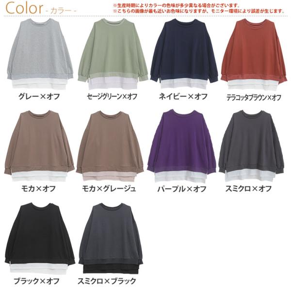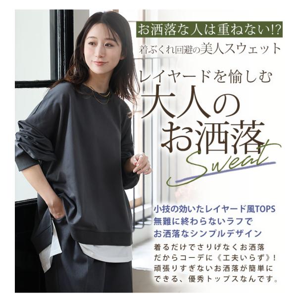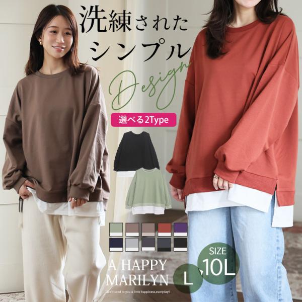 大きいサイズ レディース トップス ゆるっと楽ちん 着ぶくれ回避の 重ね着風 ミニ裏毛 プルオーバー オリジナル LL 3L 4L 5L 6L 7L 8L 9L A