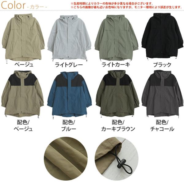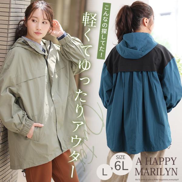 大きいサイズ レディース アウター 配色 バックギャザー マウンテンパーカー オリジナル ジャケット ライトアウター LL 3L 4L 5L 6L 秋 マンパー 薄手 A
