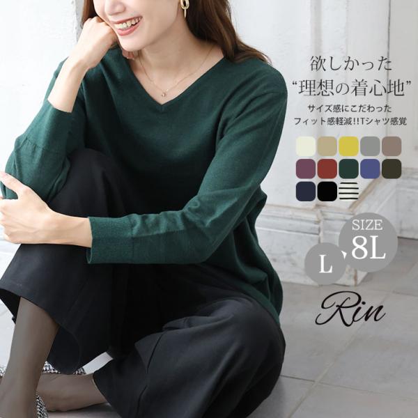大きいサイズ レディース ニット Rin フィット感軽減 Tシャツ感覚 もっちりやわらか Vネック ニット セーター トップス LL 3L 4L 5L 6L 7L A