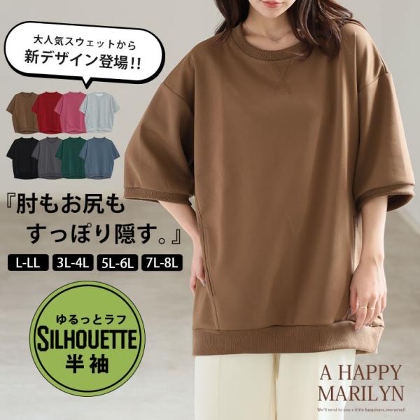 大きいサイズ レディース トップス 新色追加 半袖・七分袖・長袖 コクーン シルエット チュニック Tシャツ ワンピース LL 3L 4L 5L 6L 7L 8L A