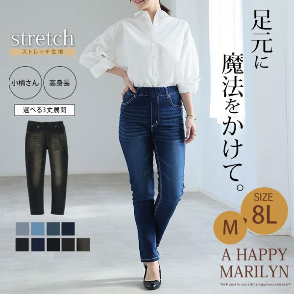 大きいサイズ レディース パンツ 新色追加 魔法の美ライン ストレッチ スキニー デニムパンツ デニムレギンス 美脚 ストレッチ ジーンズ レギパン A