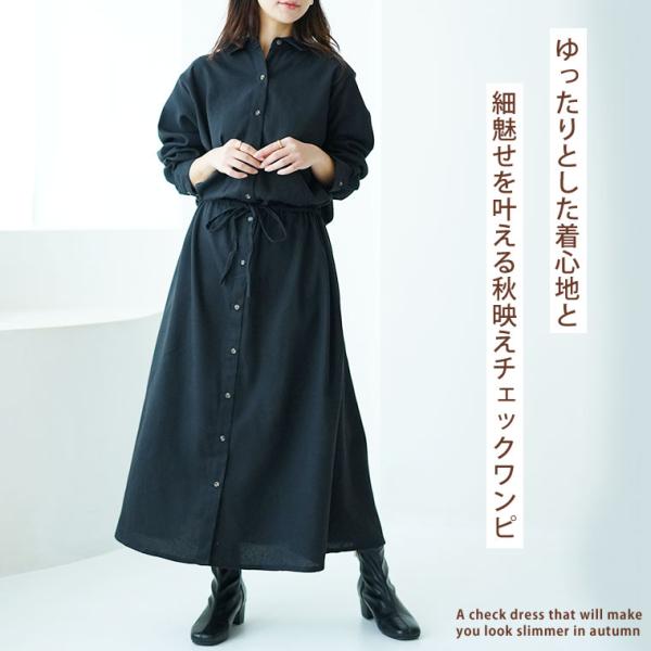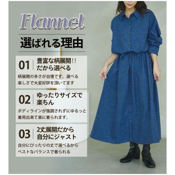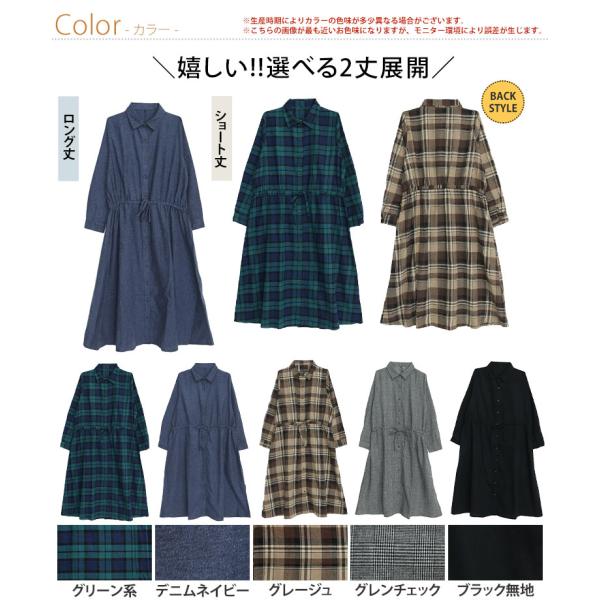 大きいサイズ レディース ワンピース 選べる身長別2丈 フランネルチェック 細魅せ ロング シャツ ワンピース デニム 微起毛 起毛 着やせワンピ LL 3L 4L A