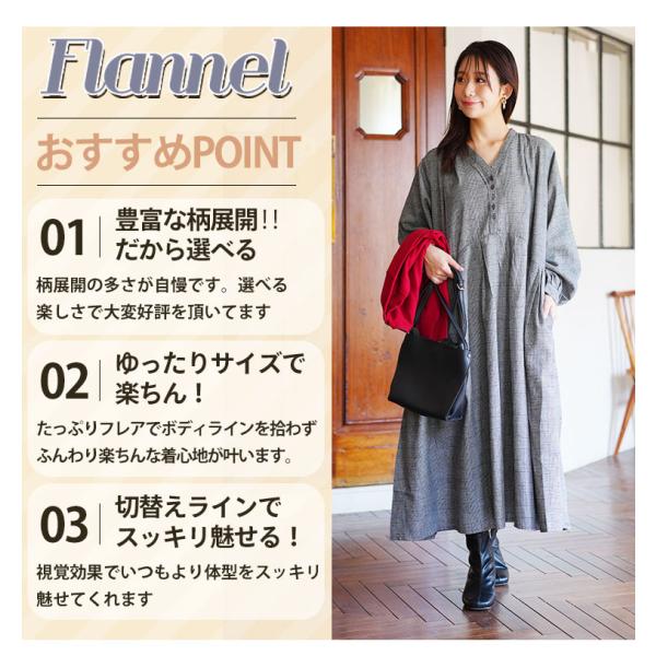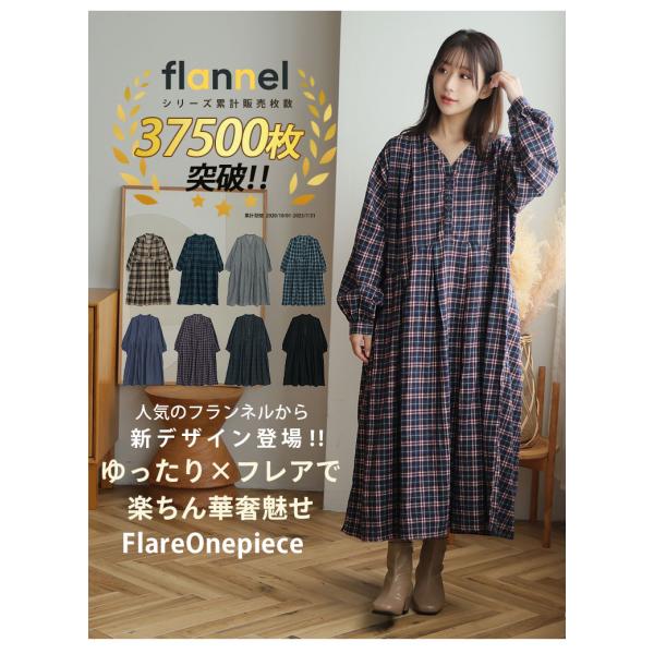 大人気のフランネルシリーズから新作登場!タックフレア ロングワンピ