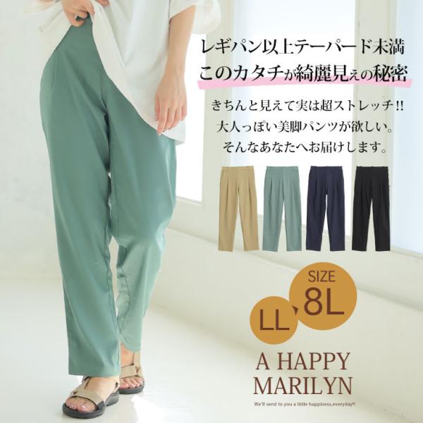 大きいサイズ レディース パンツ 楽ちんすぎて感動 ハッピーコンフィ ストレッチ テーパードパンツ オリジナル パンツ ボトムス テーパード LL 3L 4L