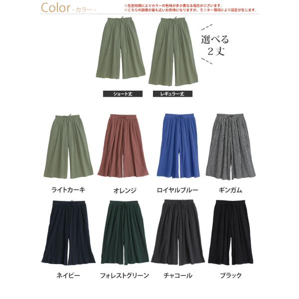 大きいサイズ レディース パンツ 風通るプレミアム 2丈展開 綿 楊柳 ギャザー フレア スカンツ ボトムス ワイドパンツ ガウチョ インド綿 LL 3L 4L 5L 6L A
