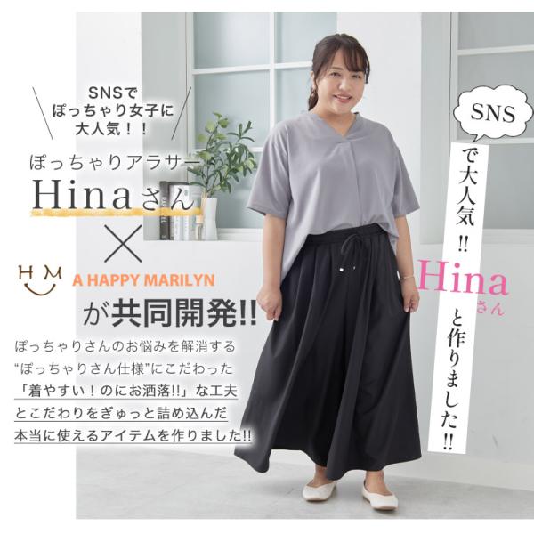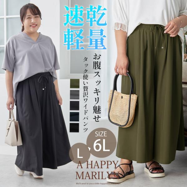大きいサイズ レディース パンツ Hinaさんコラボ ウエストすっきり タック使い ワイドスカンツ 超速乾 ボトムス タックパンツ ワイドパンツ LL 3L 4L 5L 6L S