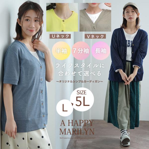 大きいサイズ レディース カーディガン 新色追加 長袖 ・ 七分袖 ・ 半袖 シンプル カーディガン オリジナル アウター LL 3L 4L 5L MA