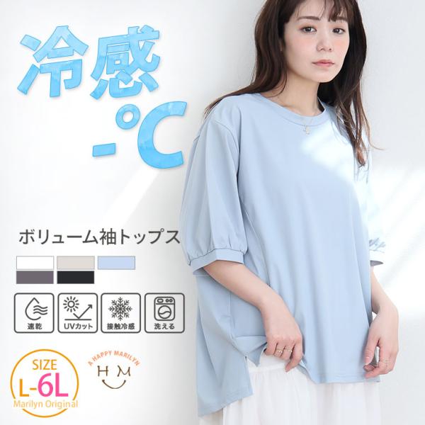 大きいサイズ レディース トップス <瞬寒 アイスヴェールシリーズ> ボリューム袖 トップス トップス LL 3L 4L 5L 6L 長袖 夏 夏物 夏服 夏用 A