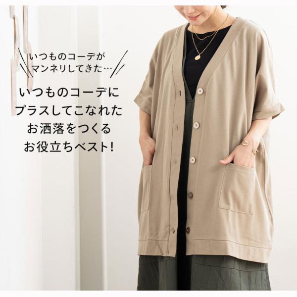 大きいサイズ レディース ベスト 3シーズン活躍 さらっと鹿の子 ビッグ 前あき ベスト ジレ LL 3L 4L 5L 6L 五分袖 秋 秋物 秋服 冬 冬物 冬服