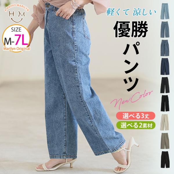 大きいサイズ レディース パンツ 新色追加 夏でも穿きたい 美脚&美尻が叶う 優勝 着痩せ ワイドパンツ デニムパンツ ジーンズ デニム ジーパン チノパン SE