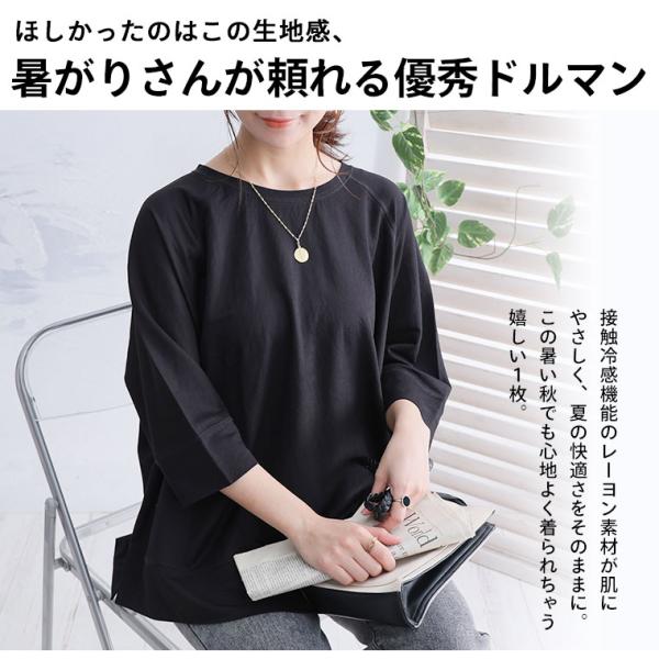 大きいサイズ レディース トップス 接触冷感 七分袖 レーヨン カノコ ドルマン トップス プルオーバー カットソー LL 3L 4L 5L 6L 秋 秋物 秋服 A
