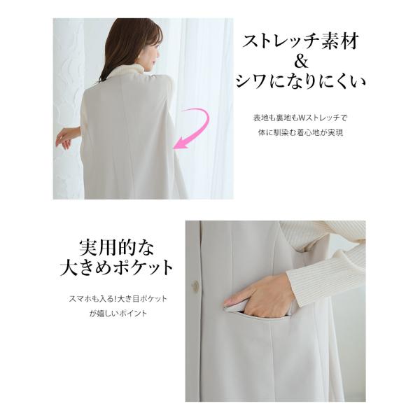 大きいサイズ レディース ジレ 伸び楽 ストレッチ ロング ジレ ライトアウター LL 3L 4L 春 春物 春服