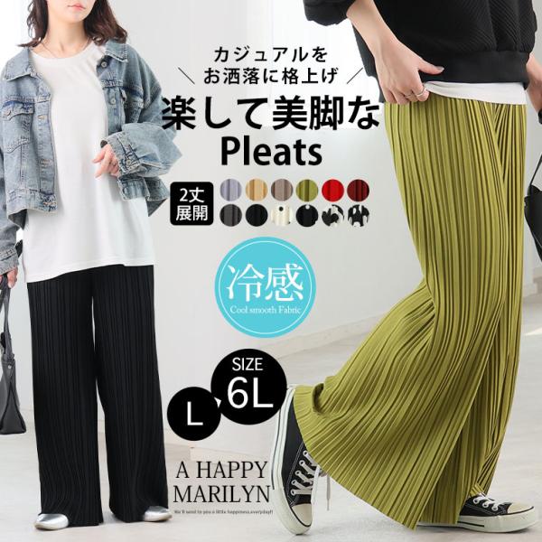 大きいサイズ レディース パンツ ひんやり 接触冷感 丈が選べる さらっと美脚 カットプリーツパンツ ボトムス LL 3L 4L 5L 6L 春 春物 春服 夏 A