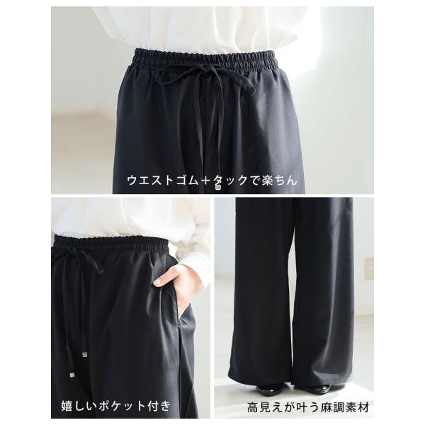 大きいサイズ レディース パンツ キチンと見えなのに楽ちん 麻調合繊 イージーパンツ ボトムス イージーパンツ イージーケア 速乾 ウエストひも 総ゴム LL 3L A