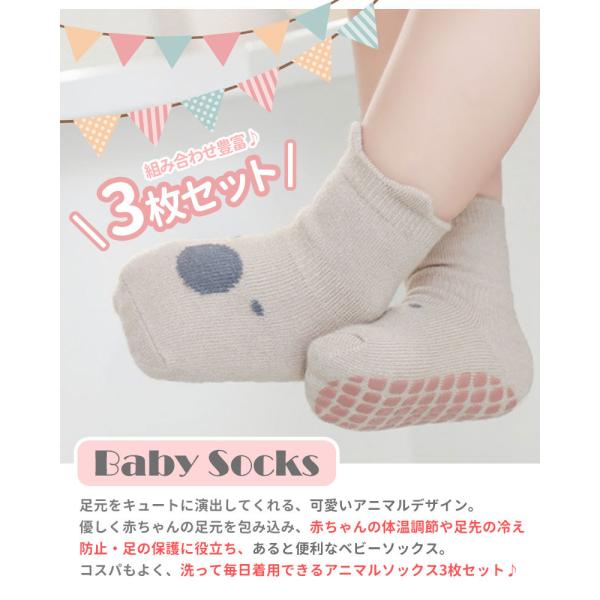 靴下 ベビー 3枚セット セット 動物 アニマル ソックス キッズ 子供用靴下 3足セット 赤ちゃん 新生児 靴下 ベビーソックス 男の子 女の子 滑り止め付き