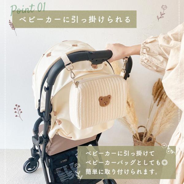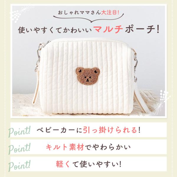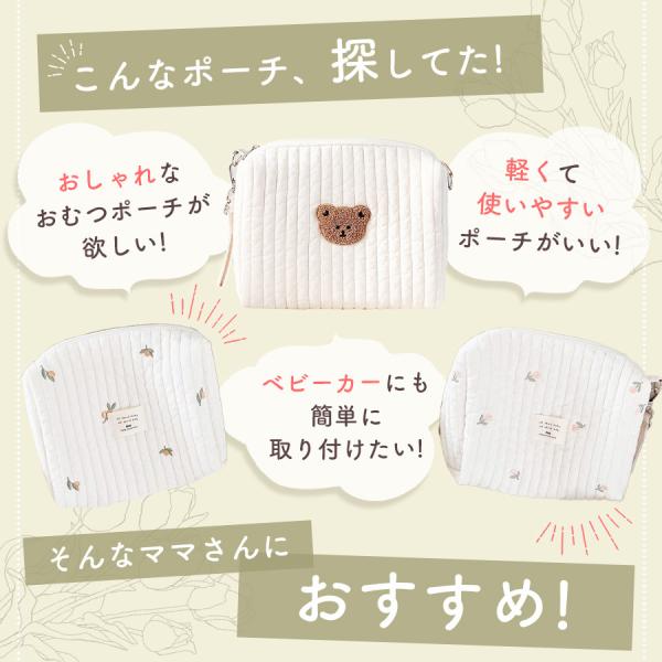 キルトポーチ おむつポーチ 赤ちゃん ベビーポーチ マルチポーチ くま ベビーカーバッグ バッグ 小物入れ 収納 シンプル おしゃれ おむつ 北欧 綿