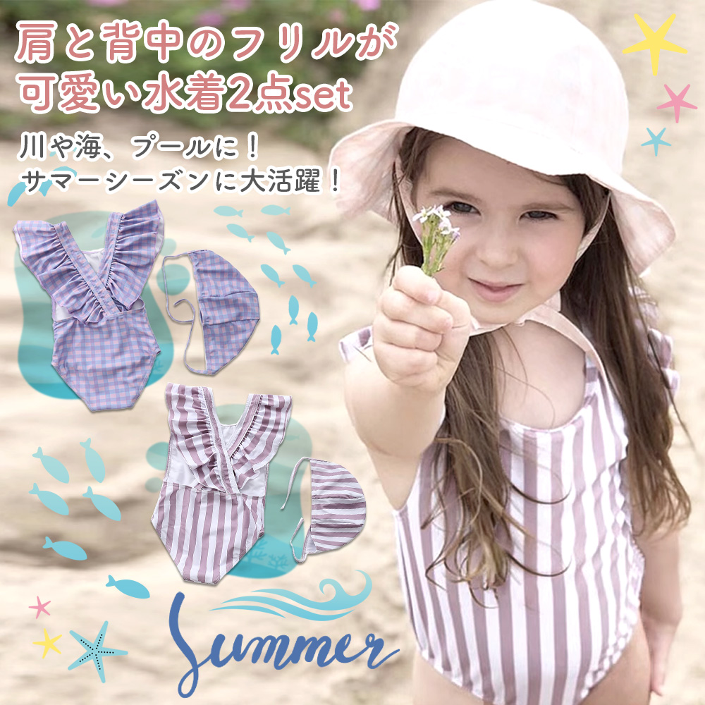 キッズ 水着 女の子 ワンピース 2点セット ベビー 子供水着 キッズ水着 女の子水着 幼稚園 保育園 スイムウェア 子供 ベビー水着