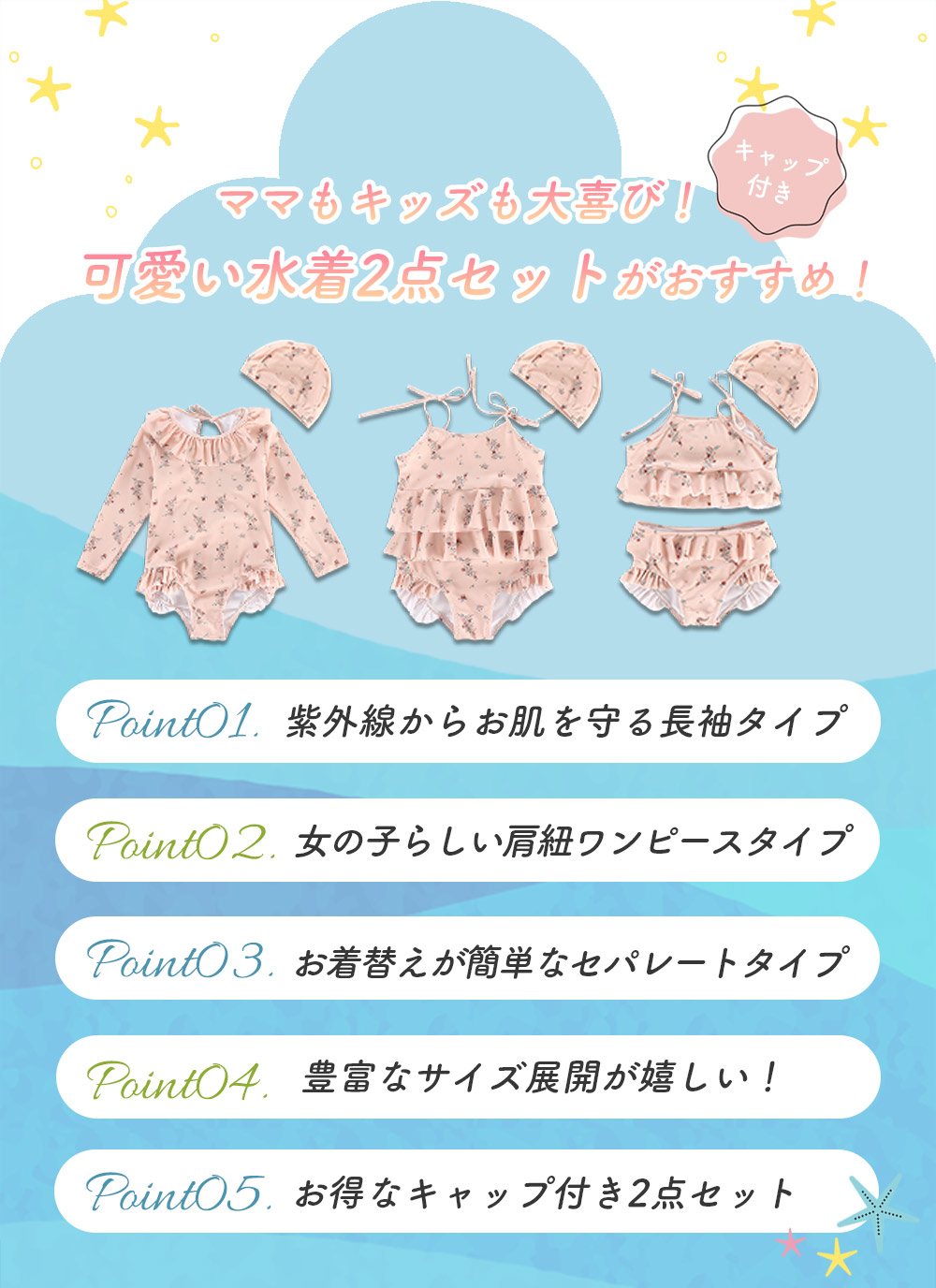 キッズ 水着 女の子 セパレート ワンピース セット ベビー 子供水着 キッズ水着 女の子水着 スイムウェア