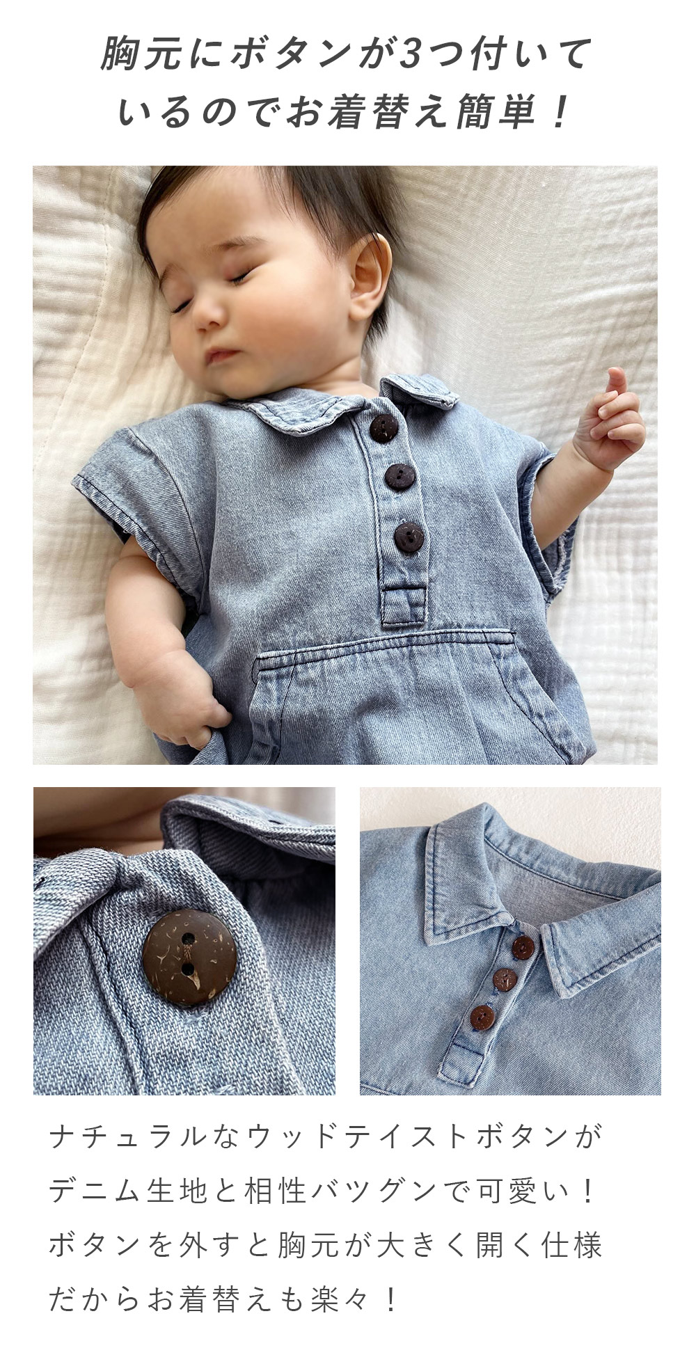 デニムロンパース 襟付き シンプル 服 外着 ベビーロンパース