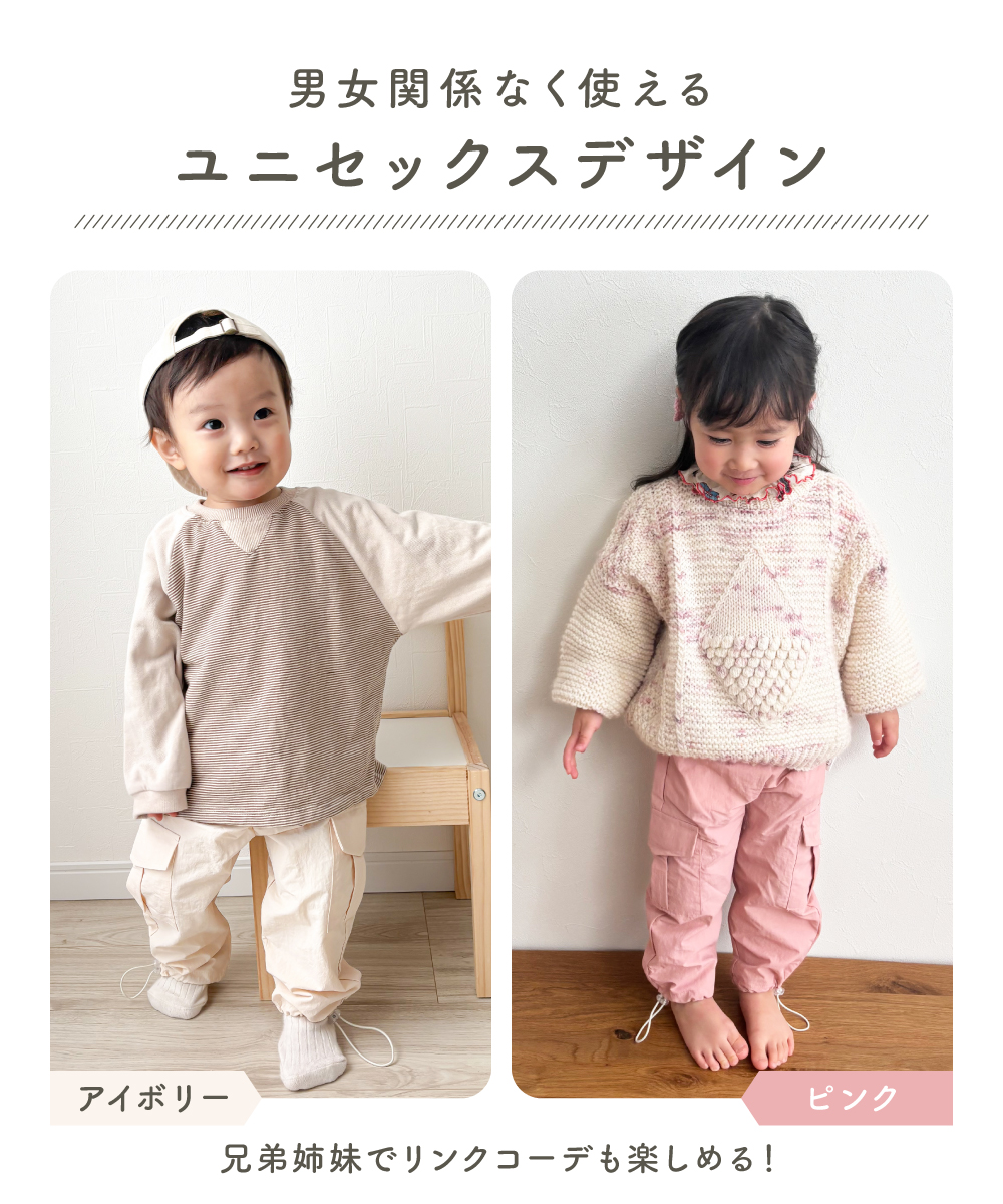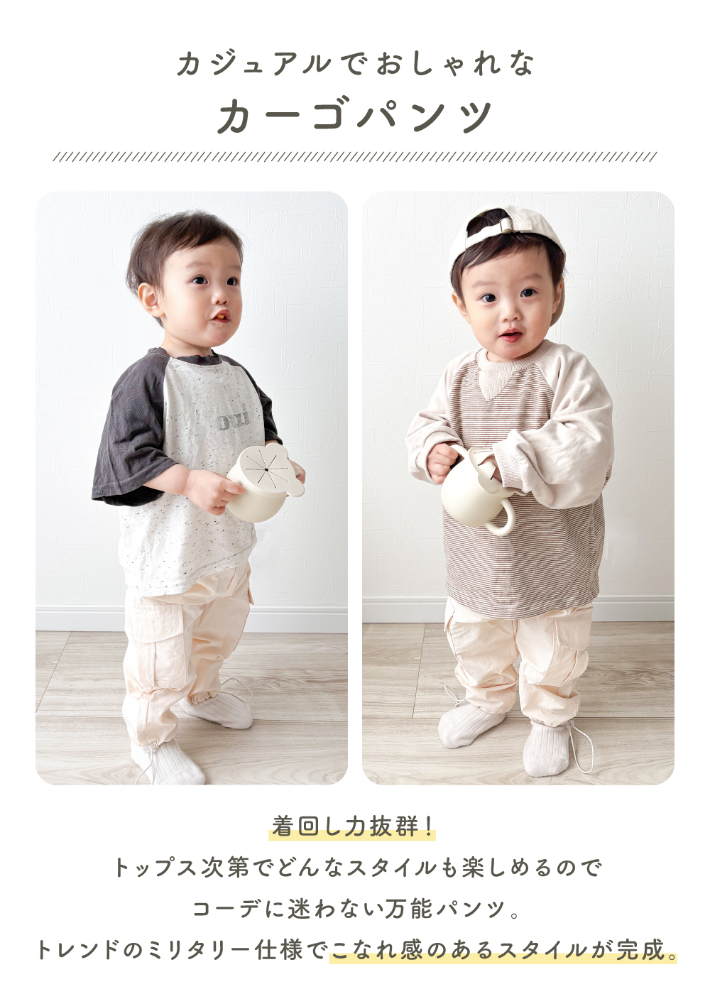 キッズ カーゴパンツ ベビー ズボン 長ズボン ボトム ボトムス パンツ 男の子 女の子 コットン 無地 服 子供服 子ども服 こども服 おしゃれ かわいい